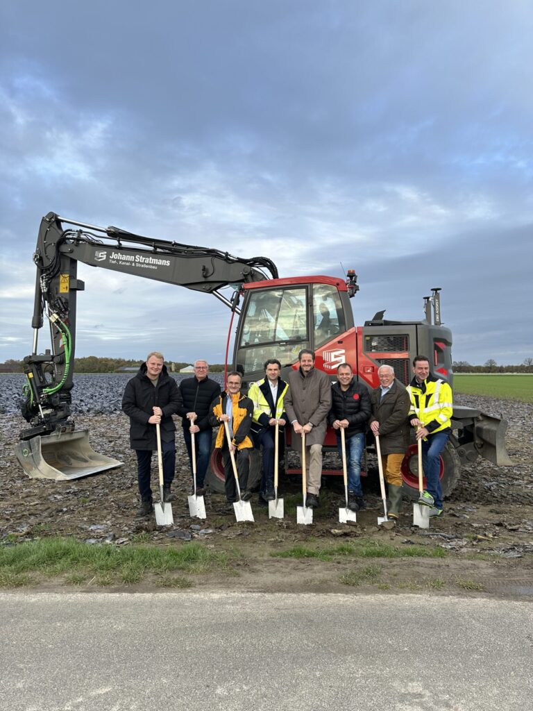 Acht Spaten, acht Männer — und sie alle begrüßten beim offiziellen Spatenstich die Bedeutung des neuen Windparks Willich 1 für die Energiewende auf kommunaler Ebene. Von links: Gero und Guido Beckers (BMR), Werner Damblon (Vorsitzender Aufsichtsratsvorsitzender Stadtwerke Meerbusch), Tafil Pufja (Geschäftsführer Stadtwerke), Christian Bommers (Bürgermeister Meerbusch), Christian Pakusch (Bürgermeister Willich), Dr. Paul Schrömbges (Vorsitzender Aufsicht Stadtwerke Willich) und Projektleiter Mario Sagner.