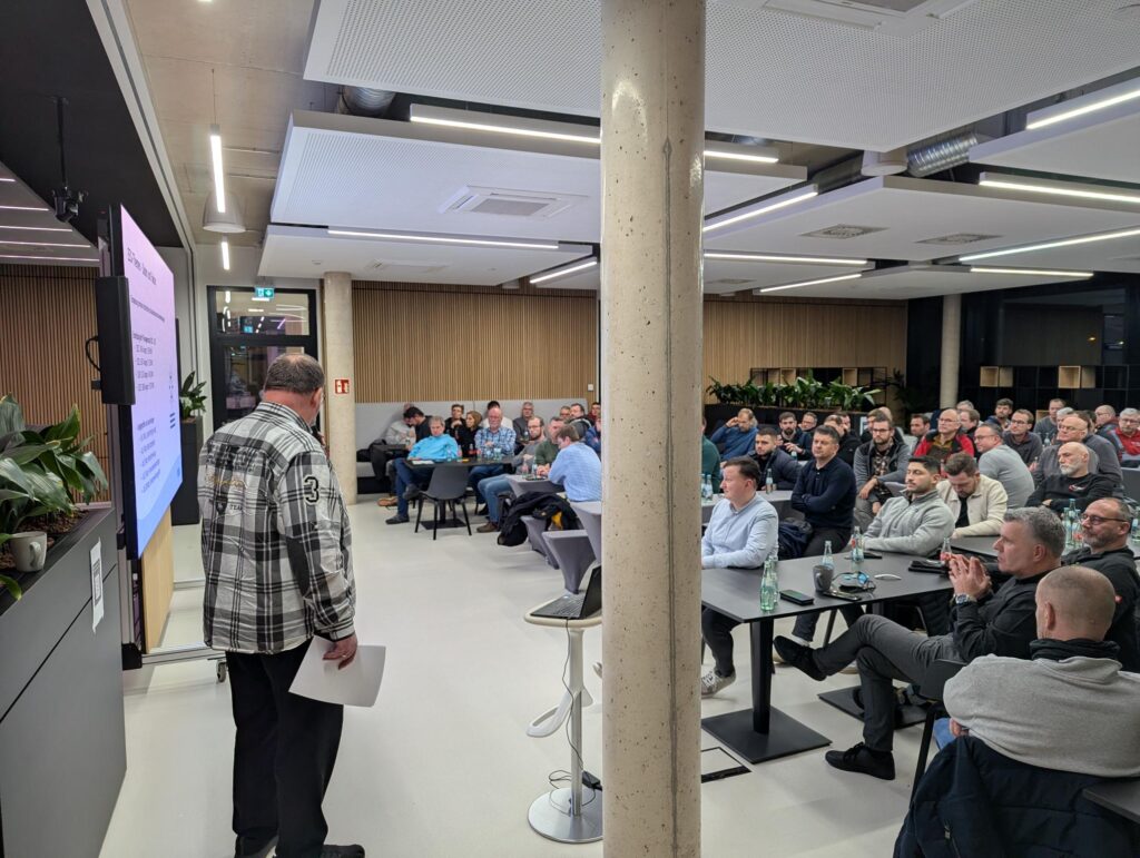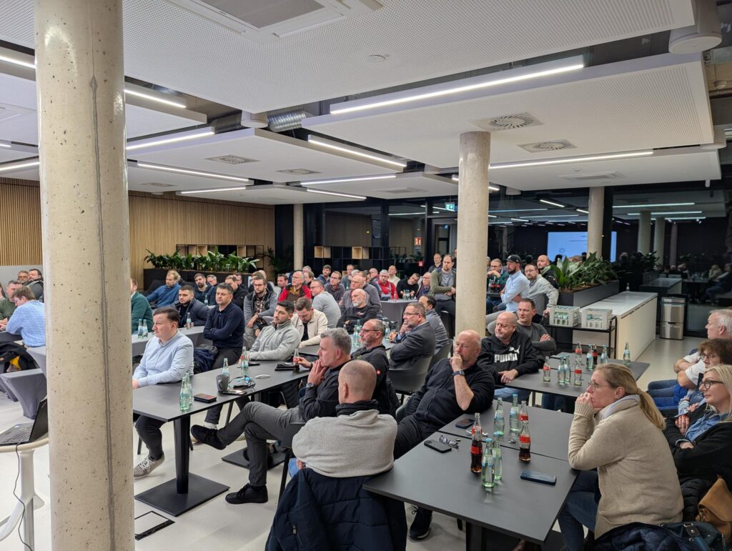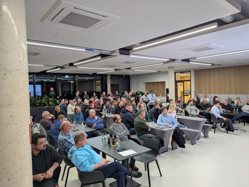Grund genug also, die Beziehung zu den regionalen Firmen zu pflegen, beispielsweise bei Treffen einmal im Jahr, zu denen wir einladen, um neue Entwicklungen vorzustellen und Feedback von den Betrieben zu bekommen. Unserer Einladung an die Gießerallee 24 sind in diesem Jahr mehr als 80 handwerklich tätige Personen gefolgt — ein neuer Rekord.